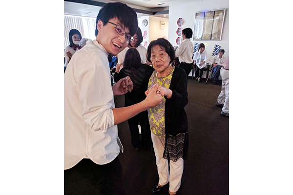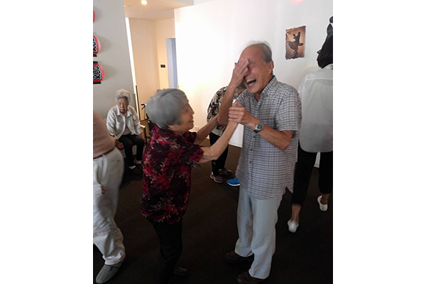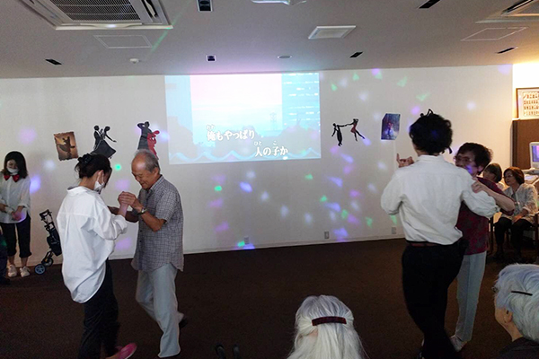 ムード歌謡に合わせてスタッフと共にステップを踏み♪