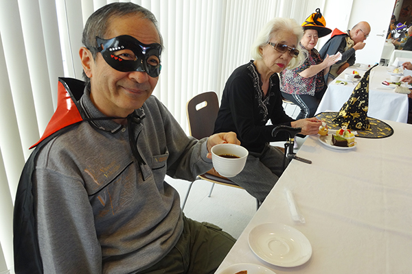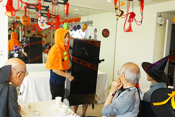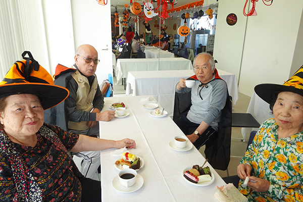 ご利用者様は少し照れながらコスプレを楽しんでおられました。また、今回の目玉はスウィーツバイキングにスタッフによるマジックショー!