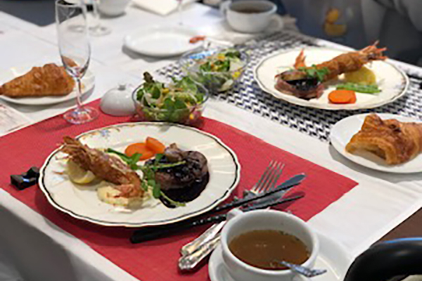 オードブルにはじまりメインディッシュからデザートまでのフルコースをスタッフが心を込めてサーブしました。