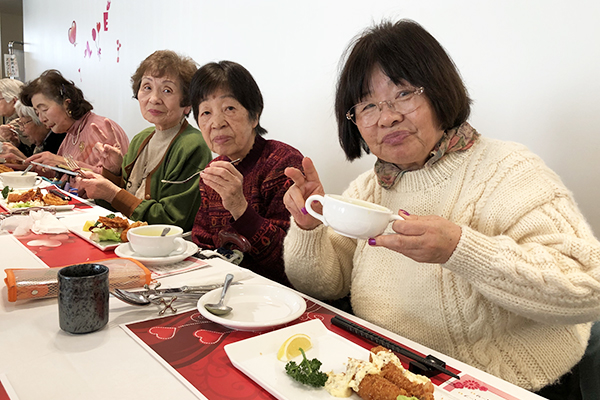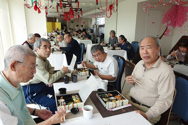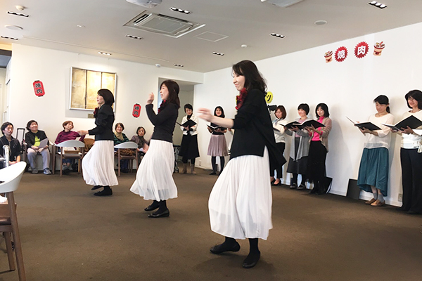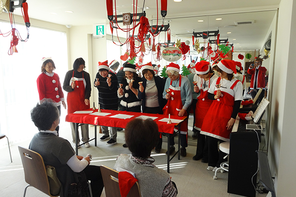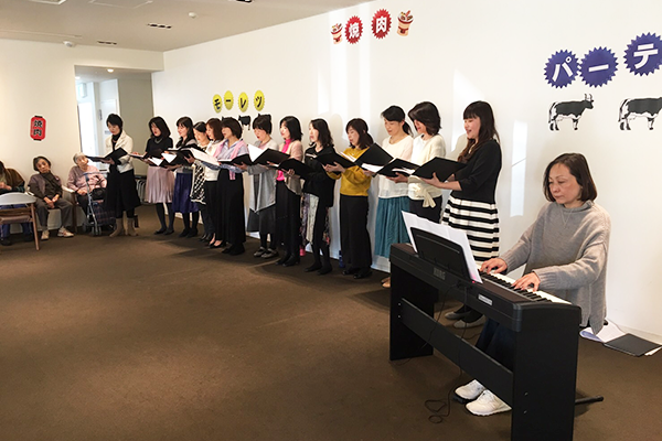 午後からは女性コーラスの方々をお招きし、美しい歌声を披露して頂きました。年代に沿った選曲で皆様も一緒に口ずさまれたりと楽しい催しとなりました。