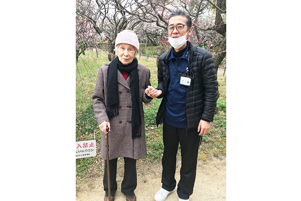 甲東園梅林公園へ歩行訓練を兼ねまして梅林を見に行きました。当日は寒さも雨も降り生憎のお天気でしたが、もうすぐ訪れる春を感じて皆様、楽しんでおられました。