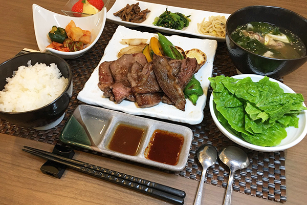 デイルームで焼くお肉の良い匂いに食欲をそそられ、ホッカホカの白ご飯と共によく召しあがっておられました。また、この日特別に仕入れたキムチとナムル、じっくりと煮込んだテールスープも大変好評でした。