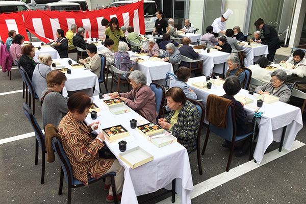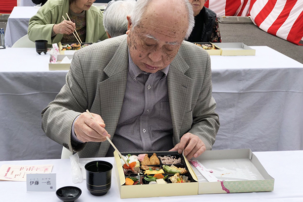 気持ちよい風が吹く中、特設会場にてひじり庵特製のお花見弁当を召しあがって頂き春の訪れを体いっぱい感じて頂きました。